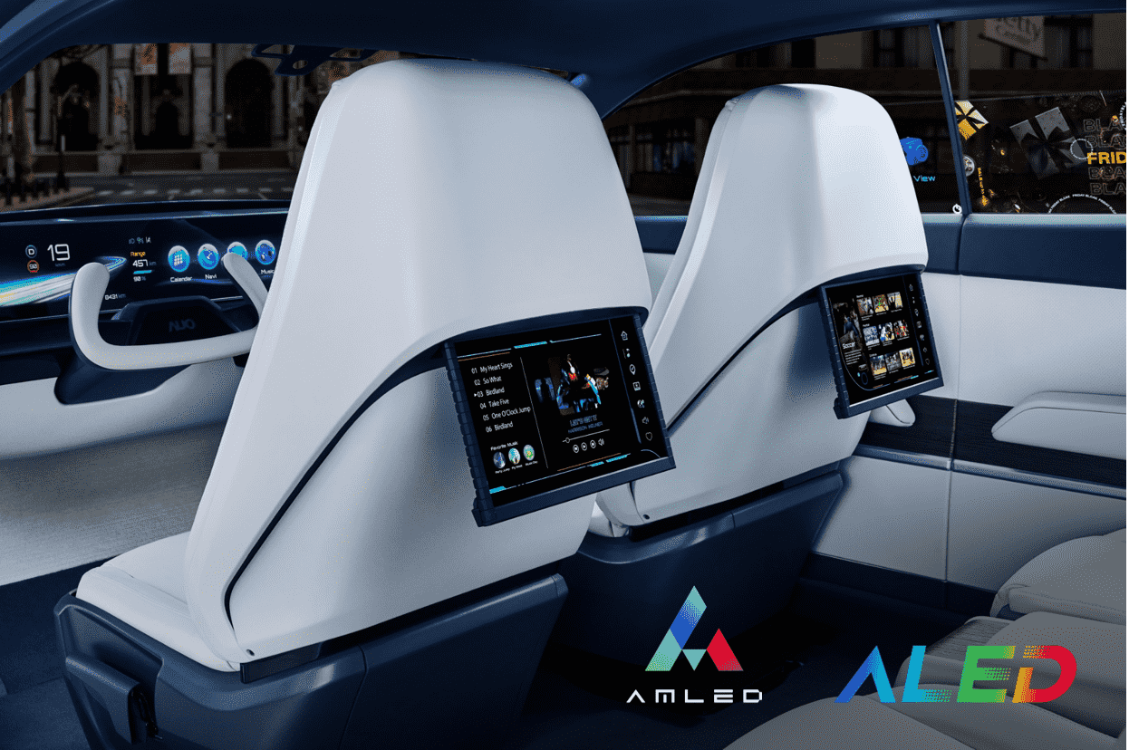 搭载A柱到A柱55吋超大型AmLED曲面显示器,,,采用全贴合技术,,,,曲面面板与车舱内装紧密贴合,,,兼顾美学设计与减震效果。。