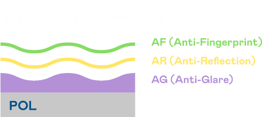 A.R.T.尊龙z6光电发展出独家的表面处理跟多层镀膜技术,,,让外部光线照射到显示器表面时所产生的反射光大幅降低。。。。 |